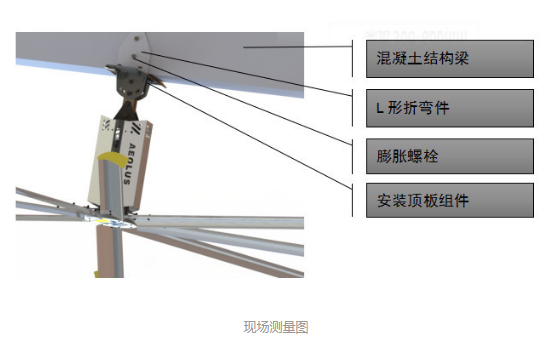 這種結(jié)構(gòu)安裝時(shí)要求梁寬在300mm至600mm之間,如果梁的寬(厚)度大于600mm則需要特別訂制安裝部件。